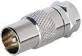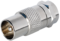 Vahvistimen tai verkkolaitteen F-liitin lähdöt muutetaan helposti IEC-lähdöiksi F/IEC adapterilla. Kierrettävä ja laadukas adapterimalli hopeanvärisenä.